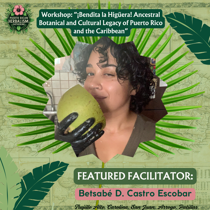 In the Indigenous cultures of Abya Yala (the Americas), plants like the calabash tree (Crescentia cujete) are recognized as close relatives rather than resources. This plant has accompanied our ancestors of the Caribbean and the Americas as medicine, food, vessel, instrument, spiritual symbol, and much more. In this workshop I will share uses of this tree, from root to seed, along with preparations and stories. I also extend an invitation to transform our perspective: to see the calabash as a teacher and relative that shows us resilience, abundance, and connection. Together we will explore how to cultivate a relationship with this sacred tree and other plants, honoring the ancestral legacy that unites us in Puerto Rico and the Caribbean.