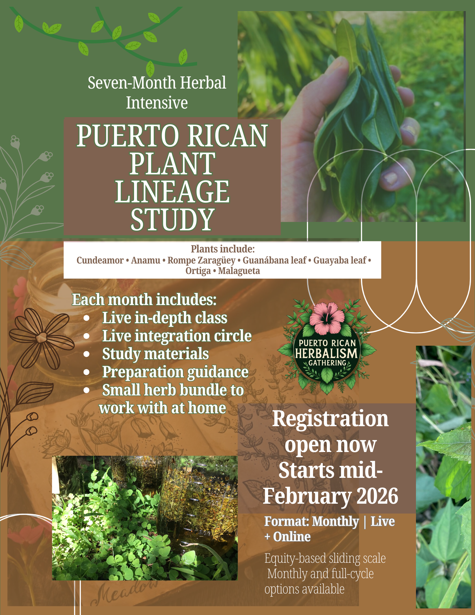 Monthly study includes a plant prep video, live 2-hour intensive, integration circle, digital workbook, & take-home herbs. As well as extended recordings, a closing honoring circle, digital completion certificate, and priority gathering access.